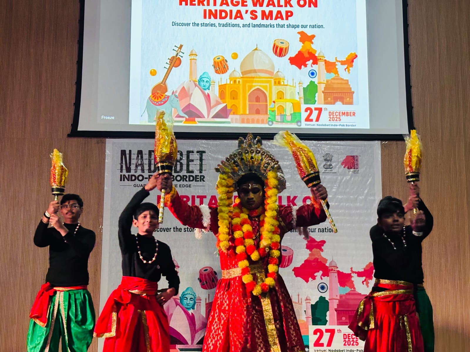 દિલ્હી પબ્લિક સ્કૂલ, ગાંધીનગરના થિયેટર તથા નૃત્ય વિભાગ દ્વારા ગુજરાતના પ્રખ્યાત નડાબેટ ઇન્ડો-પાક બોર્ડર (બનાસકાંઠા) ખાતે એક ભાવવિભોર અને દેશભક્તિથી ઓતપ્રોત સાંસ્કૃતિક કાર્યક્રમનું આયોજન કરવામાં આવ્યું. આ કાર્યક્રમ Border Security Force, Gujarat Tourism તથા Nadabet Indo-Pak Border સીમા દર્શન પ્રોજેક્ટના સહયોગથી સફળતાપૂર્વક યોજાયો હતો. કાર્યક્રમ દરમિયાન શાળાના પ્રતિભાશાળી વિદ્યાર્થીઓએ એક પાત્ર અભિનય સ્પર્ધા સાથે સાથે સંગીતમય નૃત્ય-નાટિકા “Heritage Walk on India’s Map” રજૂ કરી. … Read more